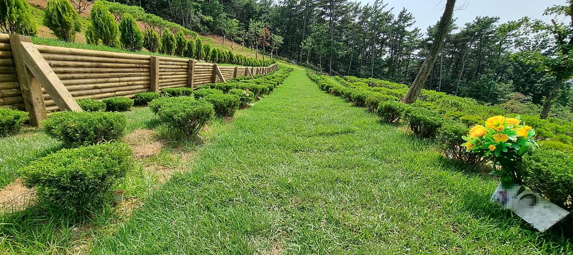 4. 잔디때위에 비석 또는 표지석을 올린다.