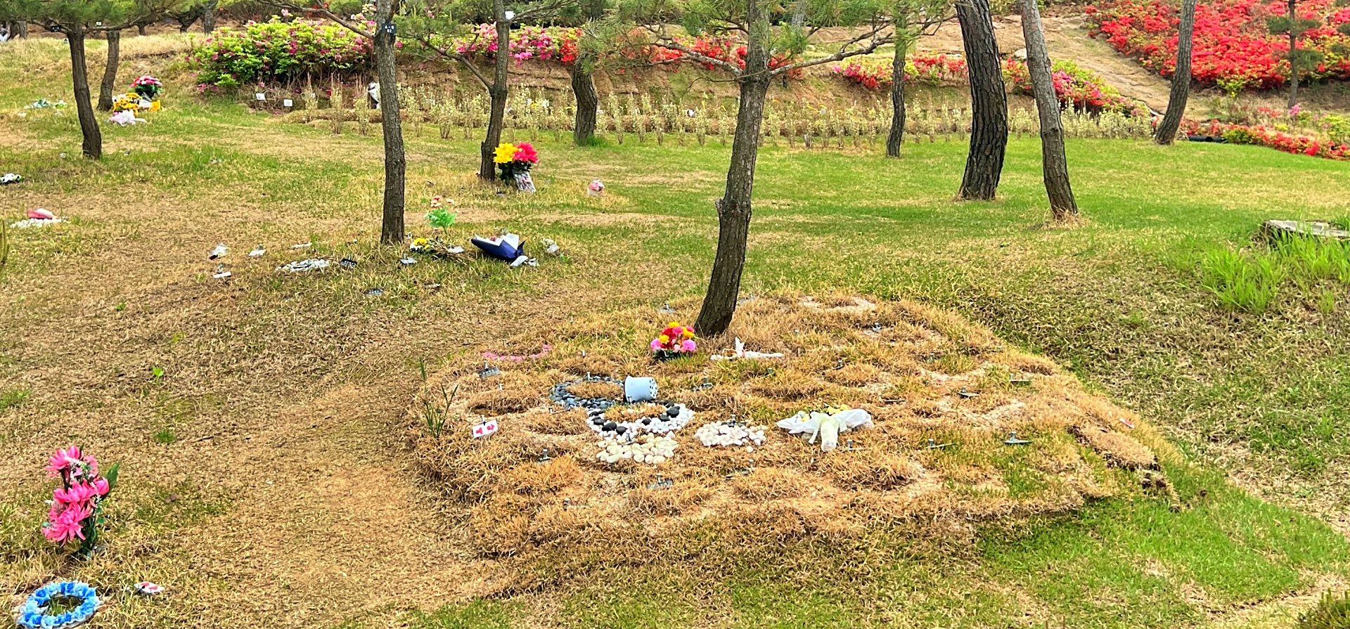 4. 잔디때위에 비석 또는 표지석을 올린다.